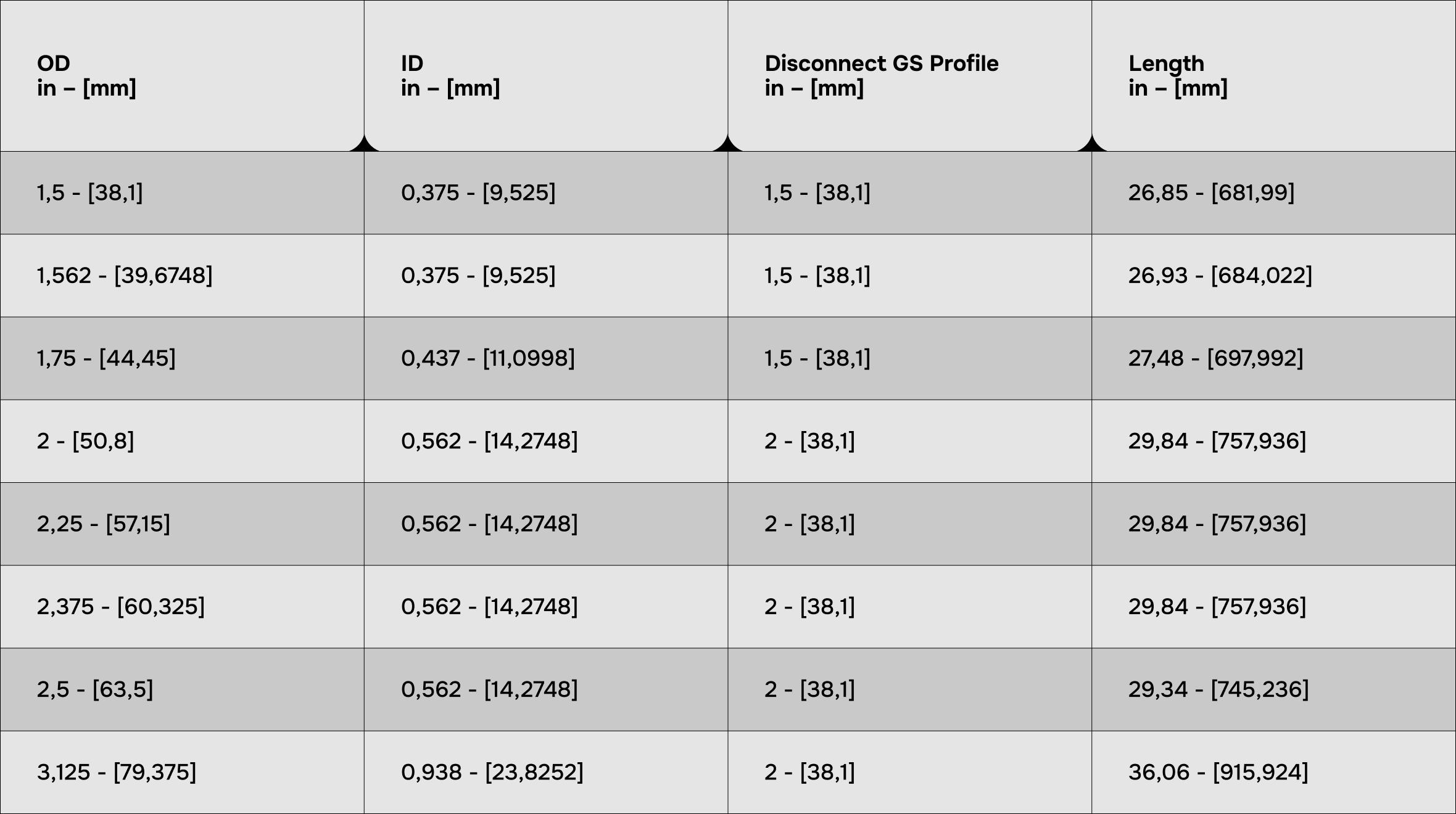Standard GS type internal fish neck profile
